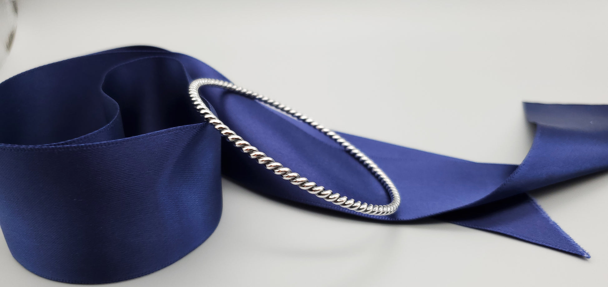 This striking braided bangle commands attention with its bold oxidized finish and intricate woven design. Crafted from sterling silver, the textured surface catches light in unexpected ways, creating depth and dimension on your wrist. The daring aesthetic works solo for maximum impact or stacked with other pieces for an edgier look. A timeless statement piece that refuses to blend in.