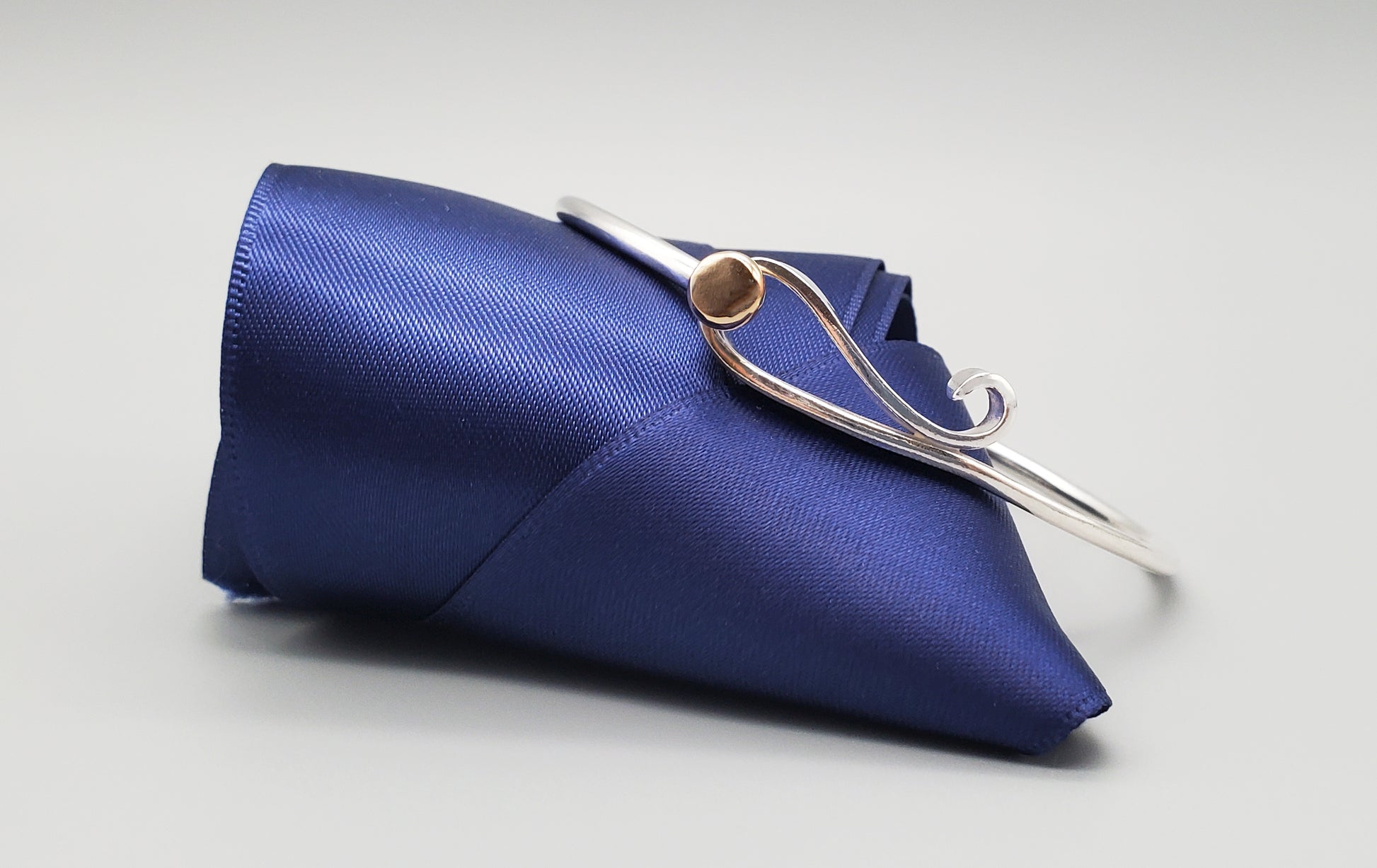 Material: .940 Argentium silver, 14kt. solid yellow gold