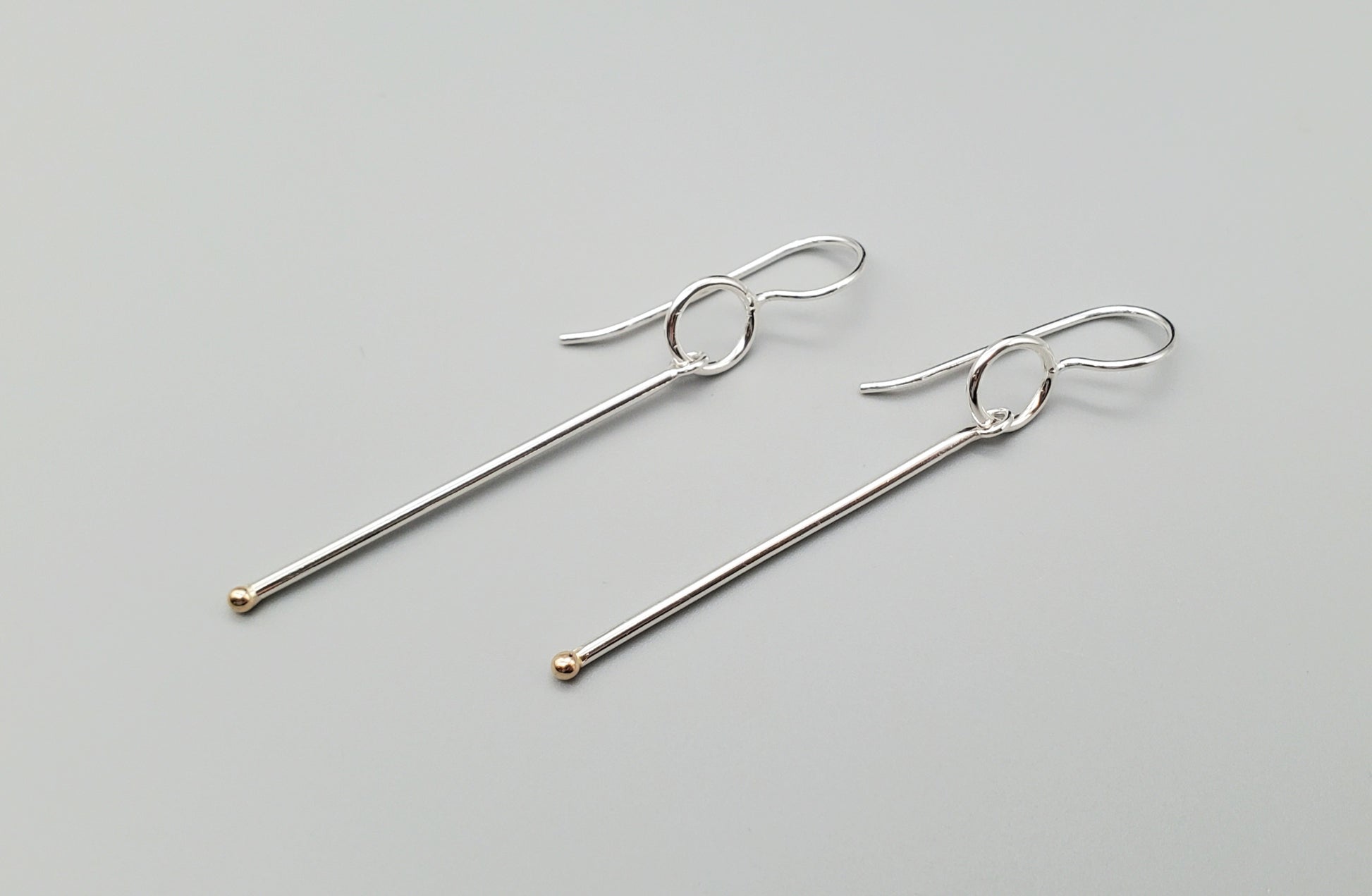 These elegant mixed metal earrings combine the lustrous appeal of Argentium silver with warm 14kt yellow gold accents. Designed with dynamic movement and a refined simplicity, they catch light beautifully with every turn of your head. Remarkably lightweight for all-day wear, these earrings deliver sophisticated style without compromise. Perfect for those who appreciate understated luxury and thoughtful craftsmanship.
