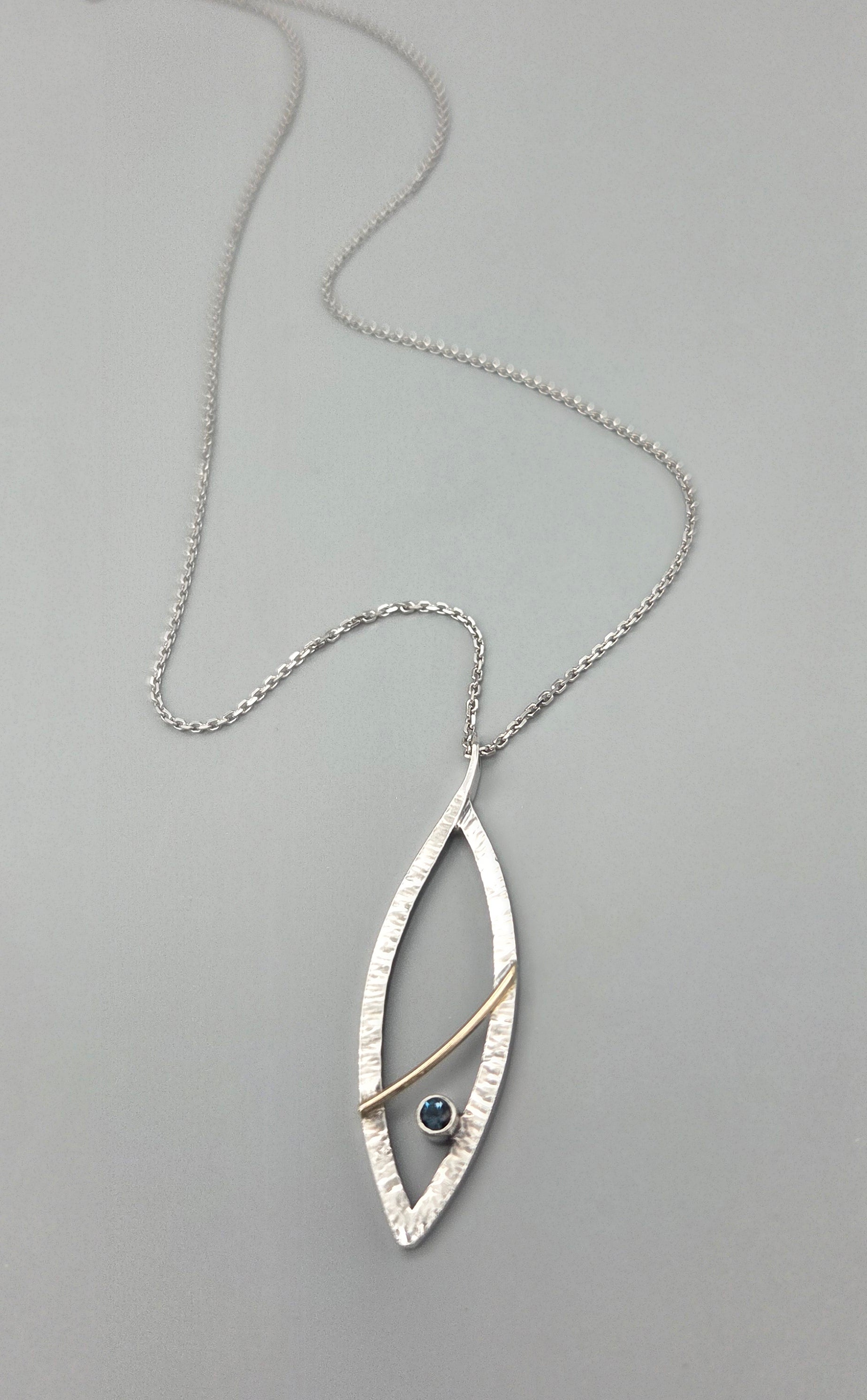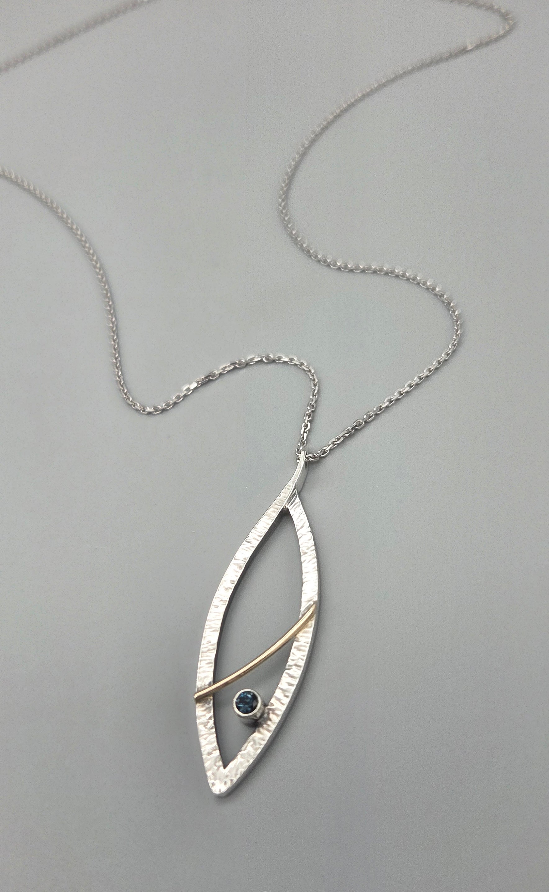 Silver and Gold, Mixed Metal Marquise Pendant with London Blue Topaz