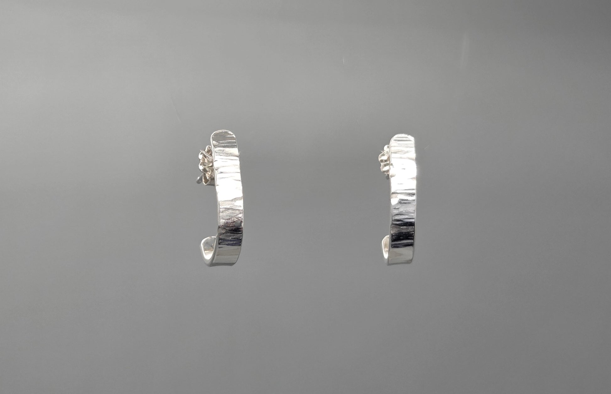 These charming half hoops bring serious style with a playful twist! Crafted from hypoallergenic argentium silver, they feature a beautifully textured surface that catches the light with every move. The wide design makes a confident statement, while the secure 5mm clutch back keeps them perfectly in place all day long. Perfect for anyone who loves jewelry that's both comfortable and conversation-starting. A versatile essential that works for casual days or dressed-up occasions.